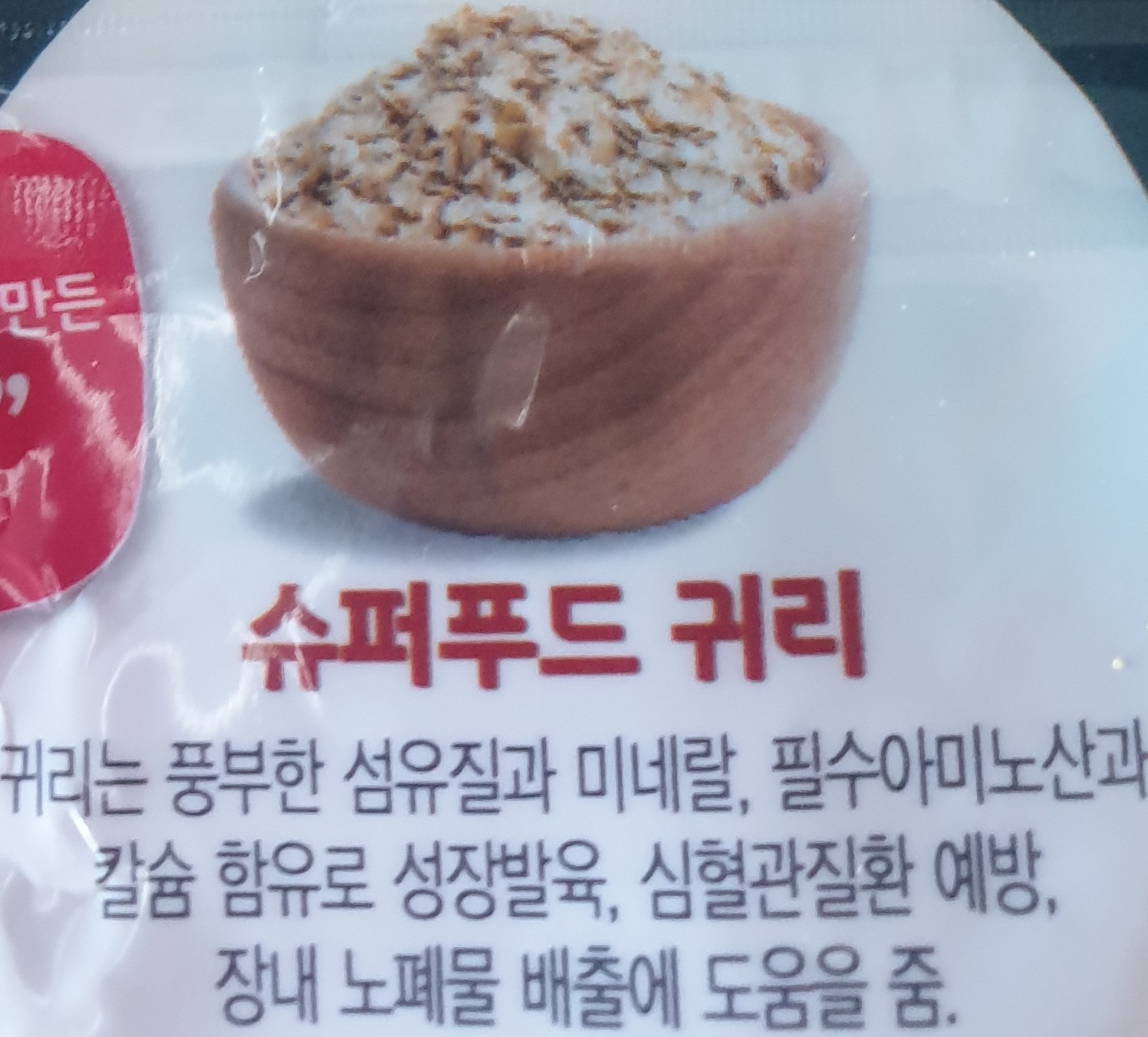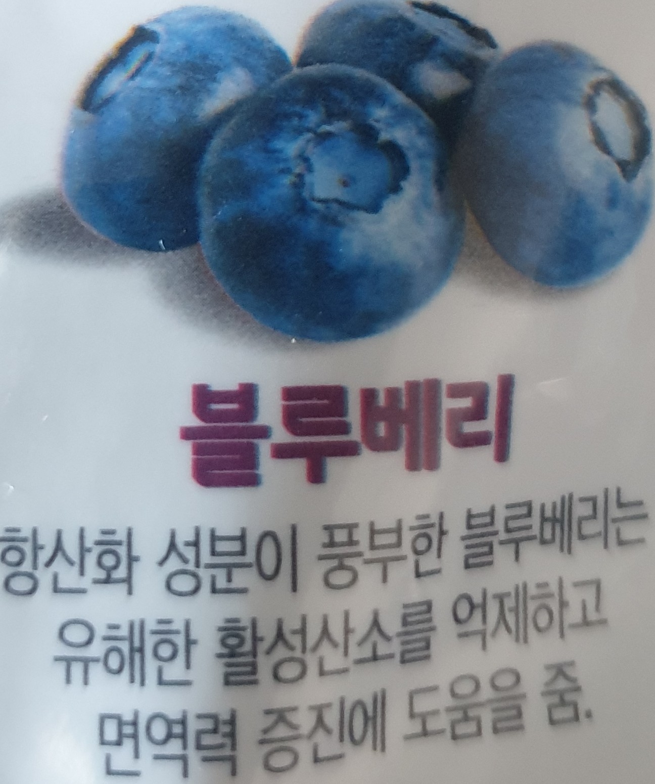 귀리(볶은 귀리분말), 블루베리, 캐롭+타피오카 전분, 쌀분말.