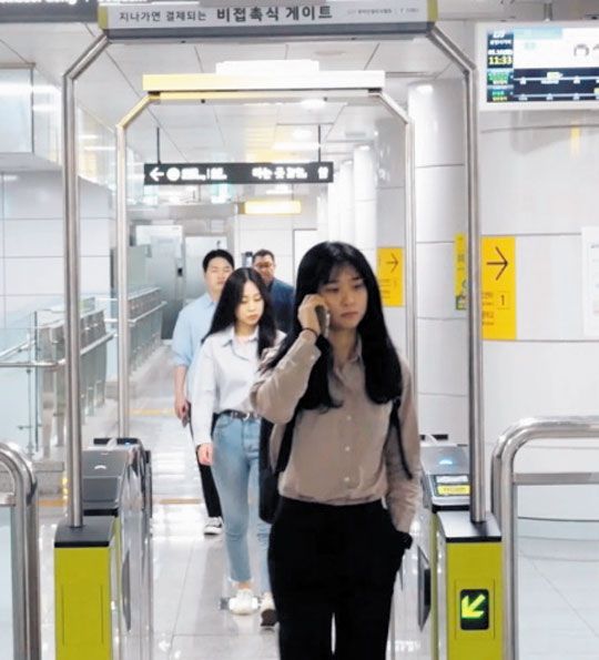 ▶서울시 세계 최초 상용화, 스마트폰에 티머니 앱 설치 후 개찰구 지나면 요금 자동 결제.◀