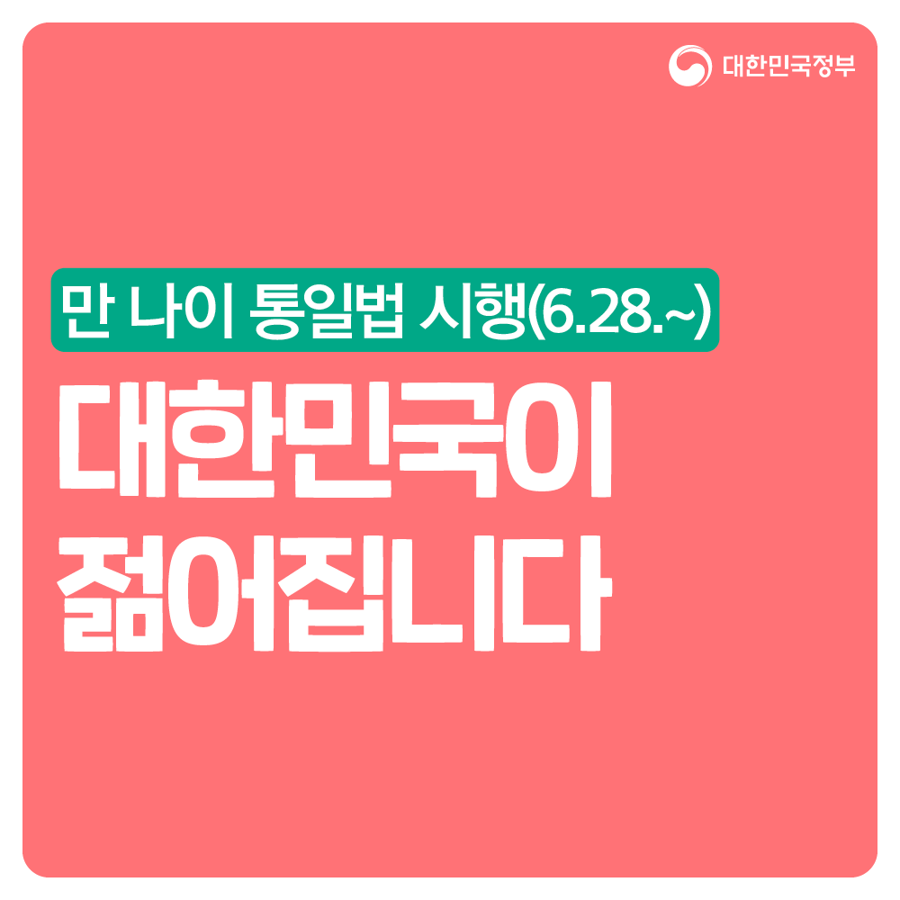 법적. 사회적 나이 계산법 혼선을 해소하기 위해 6월 28일부터 만나이로 통일합니다.