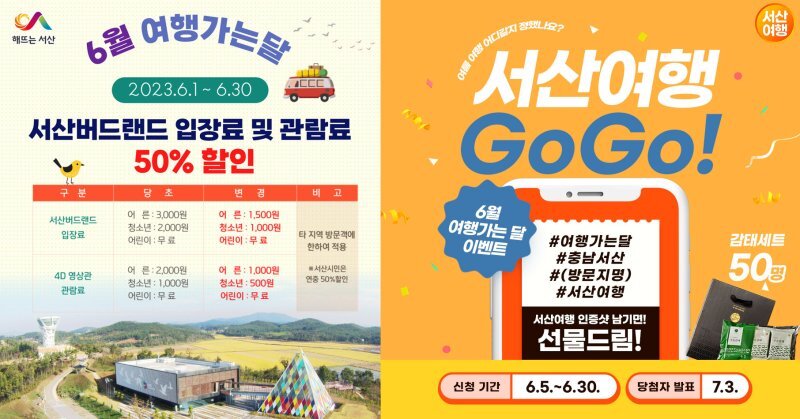 충남 서산시가 '2023 여행 가는 달 캠페인 일환으로 6월 한 달간 '여행 가는 달엔 서산여행' 캠페인 활동을 알렸다.