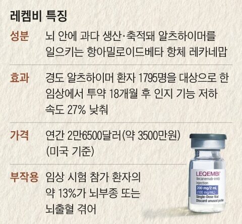 FDA 승인을 받은 레켐비는 임상시험에서 병의 진행을 늦추는 것으로 확인된 최초의 치료제이다.