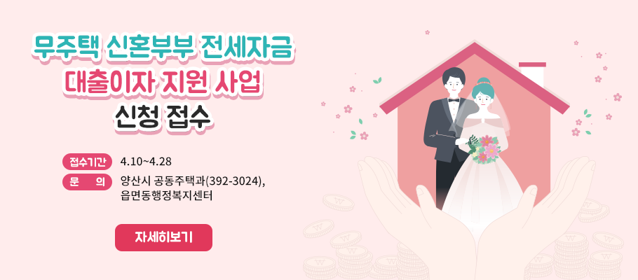 1. 2023년 양산시 무주택 신혼부부 전세자금 대출이자 지원신청 접수 공고.